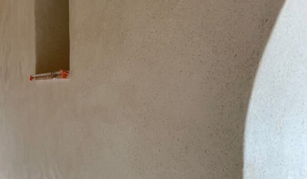 La patine ne pouvant être uniforme (le pigment va s’accrocher dans les différentes aspérités du support), j’ai choisi de jouer avec cette particularité en insistant sur certaines zones. Le chaux-chanvre se prête particulièrement à ce jeu de par son séchage très lent qui permet de travailler « a fresco » pendant 48 à 72h (avant que le mur se mette à transpirer), et donc de passer plusieurs couches de patine.
